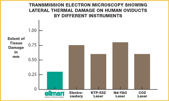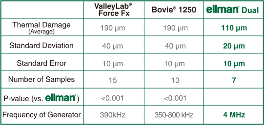 與大多數(shù)激光相比較,ellman?射頻技術(shù)僅產(chǎn)生他們1/2到1/3的側(cè)向熱損傷