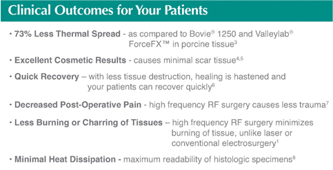 與傳統(tǒng)的"電刀"相比較,ellman?射頻技術(shù)僅產(chǎn)生他們1/3的側(cè)向熱損傷變形