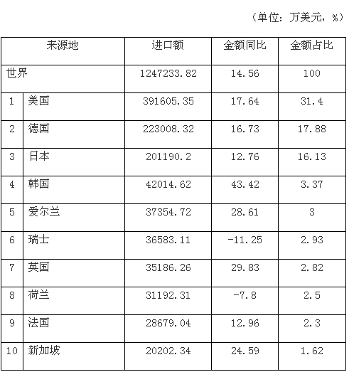2012年中國醫療器械產品進口主要來源地