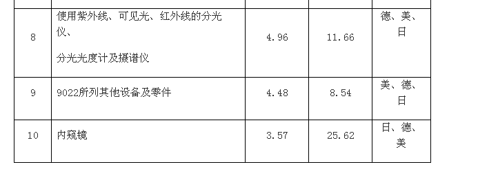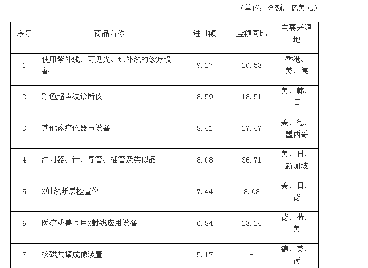 2012年中國醫療器械進口產品統計