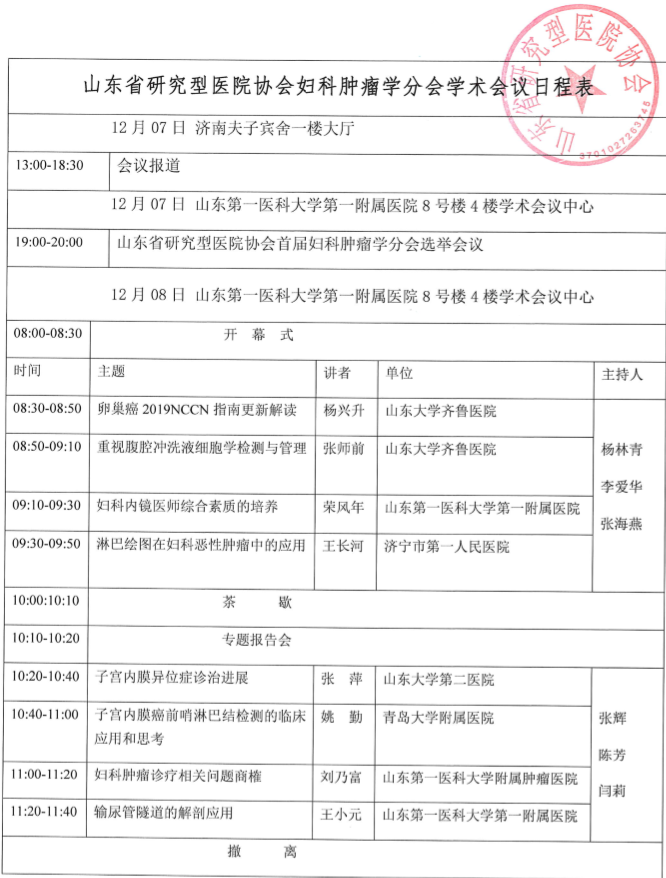 2019年12月07日19:00山東省研究型醫(yī)院協(xié)會婦科腫瘤學(xué)分會選舉會議