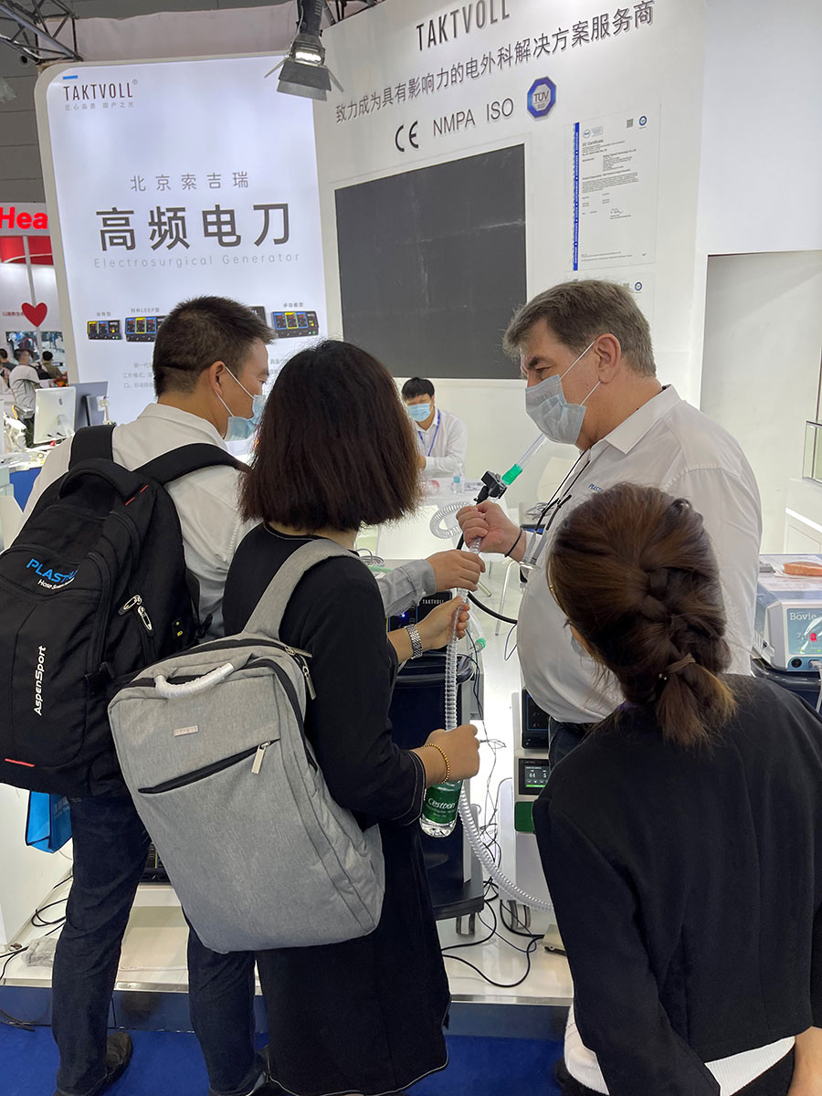 此次,華康普美攜自主研發(fā)品牌TAKTVOLL高頻電刀及利普刀,高清陰道鏡系列及吸煙器等產(chǎn)品亮相本次展會,吸引了大量的觀眾駐足咨詢……