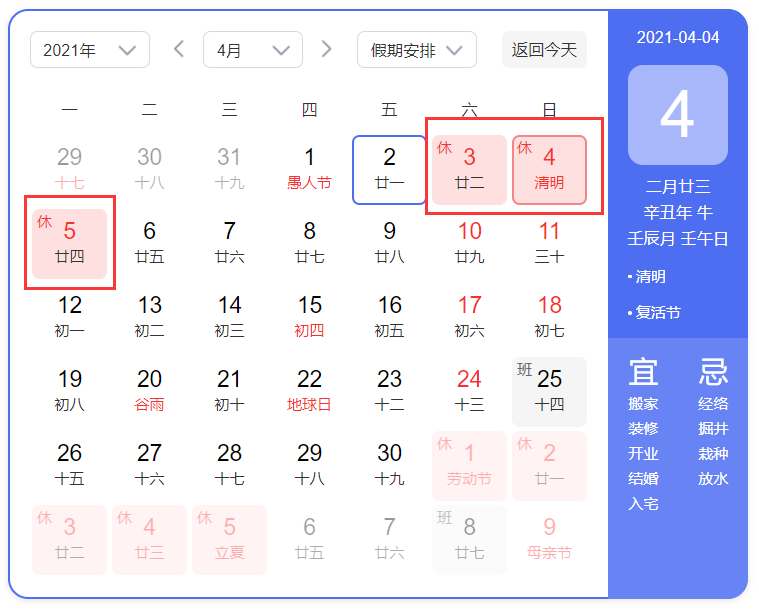 2021年北京華康普美科技有限公司,“清明節”假期為:4月3日-4月5日,共3天。