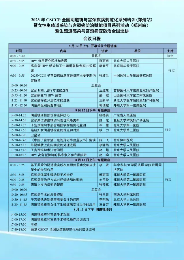 2023年CSCCP全國陰道鏡與宮頸疾病規(guī)范化系列培訓通知(鄭州站)