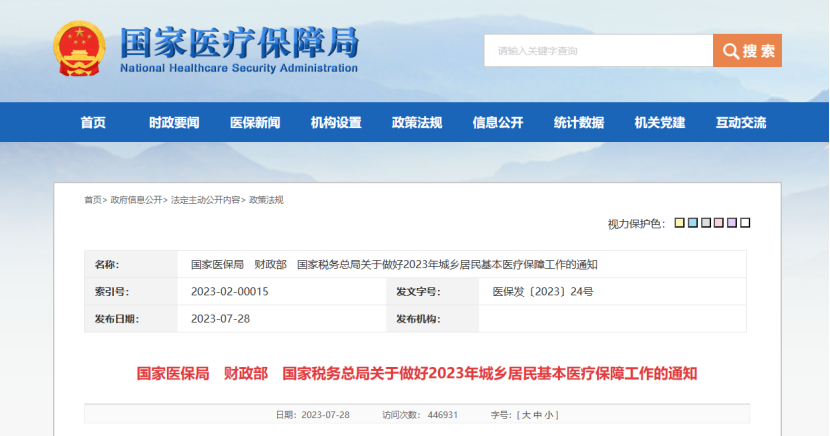 7月28日,國家醫保局發布《國家醫保局 財政部 國家稅務總局關于做好2023年城鄉居民基本醫療保障工作的通知》(以下簡稱《通知》)。