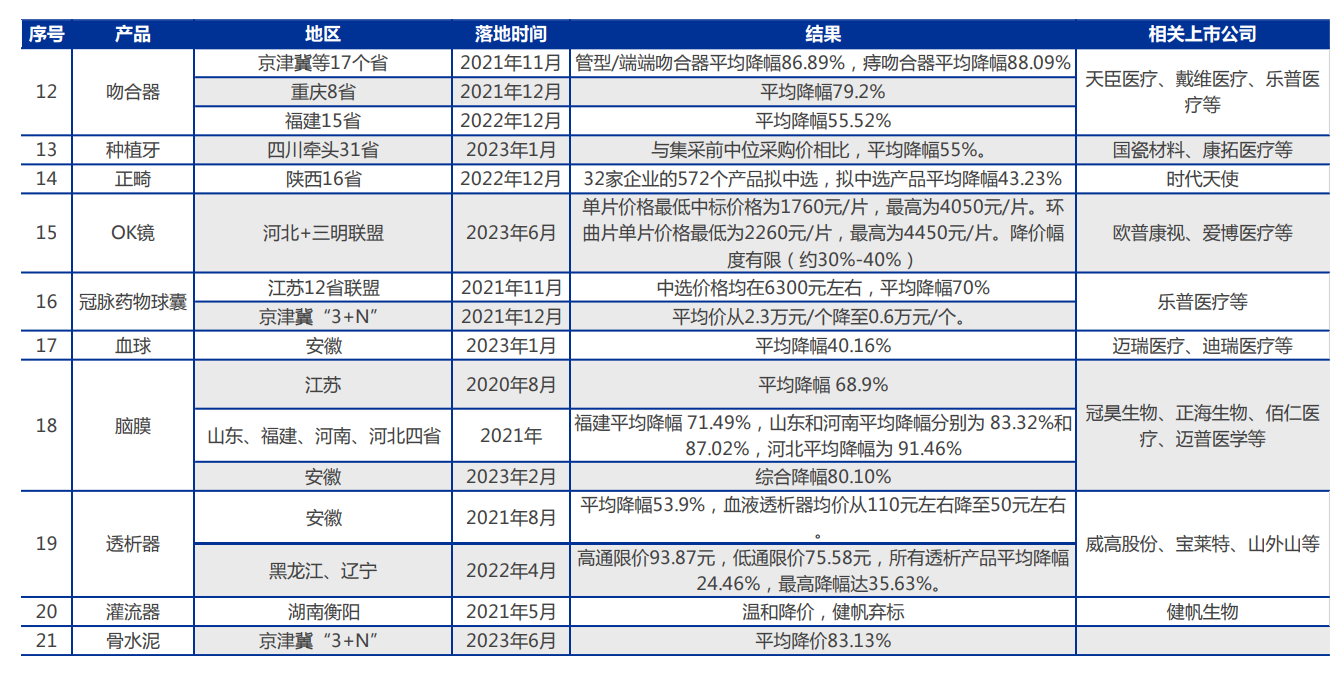 據觀察,省際聯盟和省級耗材集采不斷擴圍,部分地區嘗試一次性開展大批量耗材集采。例如,河北去年一次性開展22類耗材集采,今年一次性開展19類耗材集采,江西、青海、安徽、廣西等部分省市也加入了河北牽頭的耗材集采。