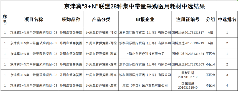 京津冀“3+N”聯盟是省際耗材聯盟集采的重要力量之一。就在前不久,京津冀“3+N”聯盟還開展了彈簧圈類耗材帶量聯動采購,中選產品平均降幅達到57.18%。