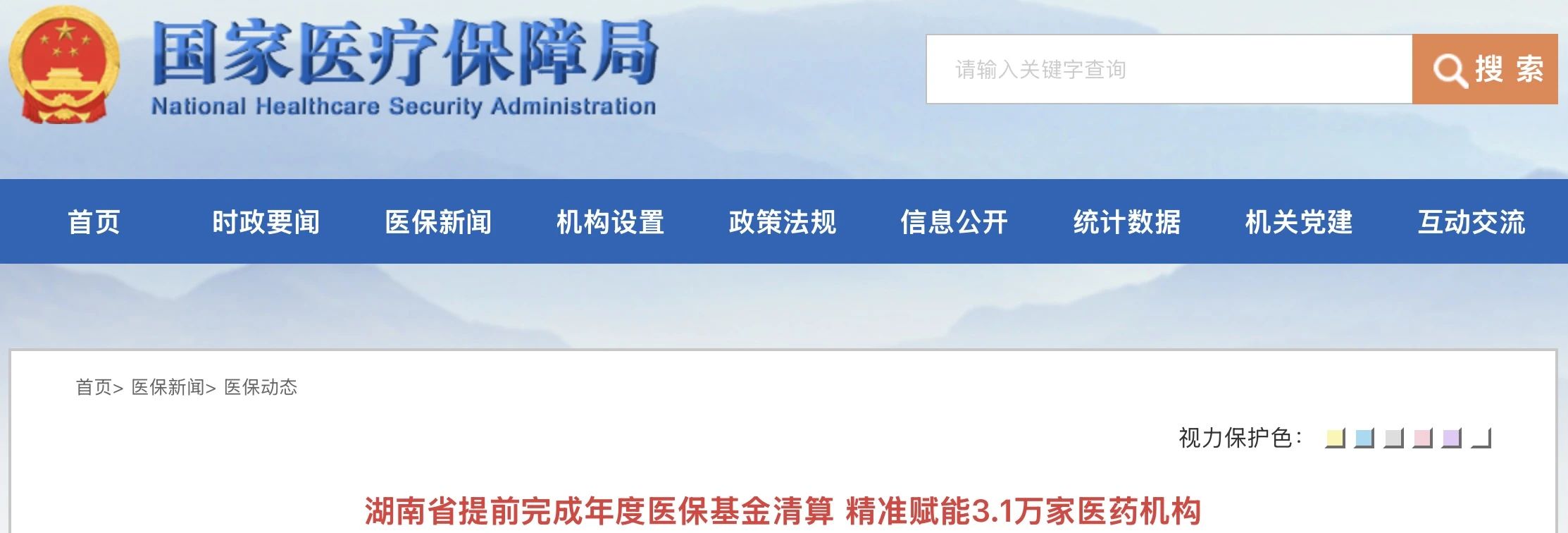 今日(6月11日),國家醫保局發布《湖南省提前完成年度醫保基金清算 精準賦能3.1萬家醫藥機構》。