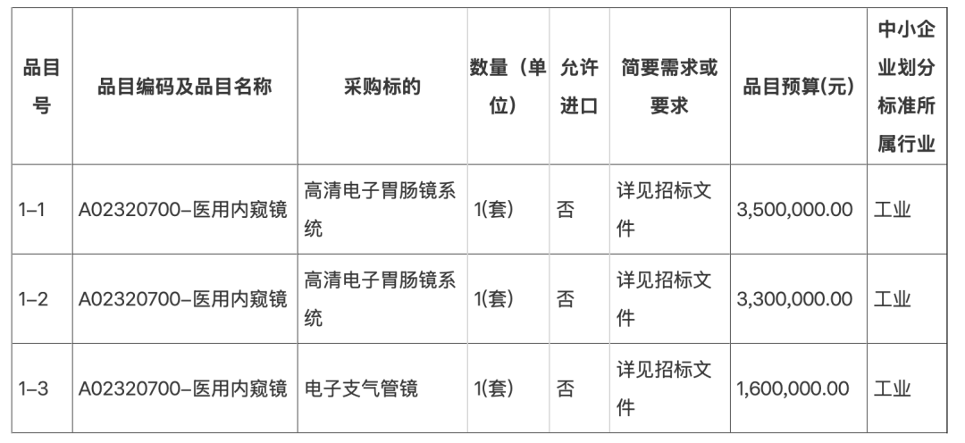 其中,項(xiàng)目一(高端心血管彩超、彩色超聲診斷儀)預(yù)算金額720萬(wàn)元,最高限價(jià)564萬(wàn)元;項(xiàng)目二(醫(yī)用超聲波儀器及設(shè)備)預(yù)算金額715萬(wàn)元,最高限價(jià)531萬(wàn)元;項(xiàng)目三(醫(yī)用內(nèi)窺鏡)預(yù)算金額840萬(wàn)元,最高限價(jià)580萬(wàn)元。