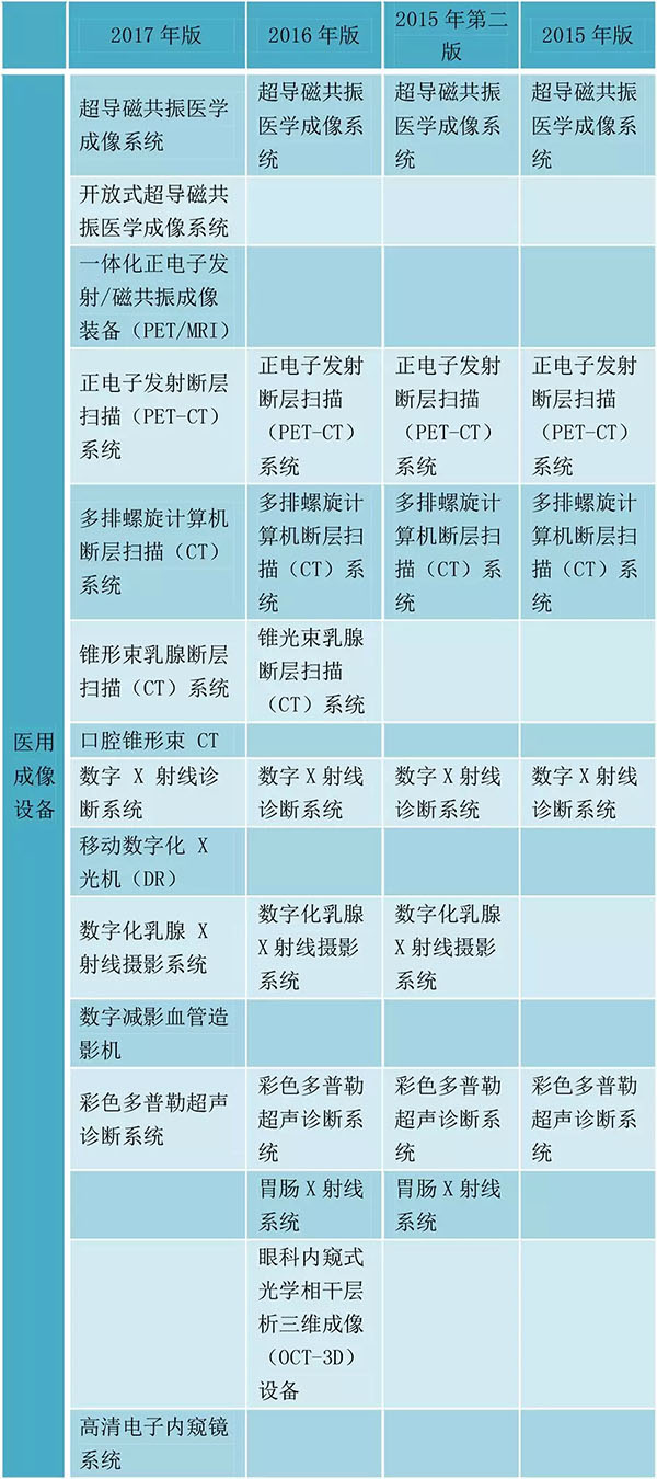 2015年版納入目錄的尚只有8種醫療裝備產品,2015年第二版增加到11種,2016年版增加到21種,2017年版則又增加到了32種。