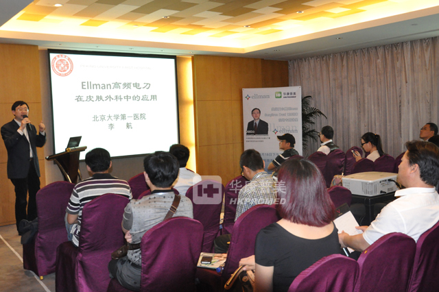 北京大學第一醫院皮膚科副教授、中國醫師協會皮膚科分會副總干事、皮膚外科亞專業主任委員----李航博士招商會現場講解美國ELLMAN射頻刀在皮膚科的重要應用