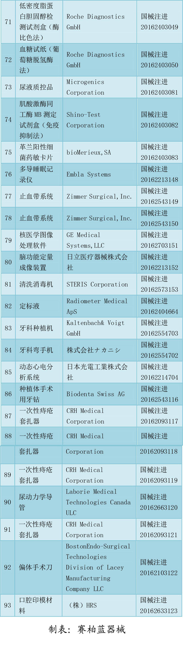 12月13日,CFDA發布了《總局關于批準注冊醫療器械產品公告(2016年第188號)》,公告稱,2016年11月,國家食品藥品監督管理總局共批準注冊醫療器械產品93個。