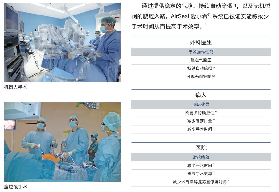 數據顯示,以前很難實現在低腹壓下操作腹腔鏡手術是由于采用了傳統氣腹機注氣技術的局限性。AirSeal 愛爾希® 系統采用獨特的穩定氣腹壓以及持續自動除煙*的功能使外科醫生實現在低腹壓下完成手術而不影響手術視野。