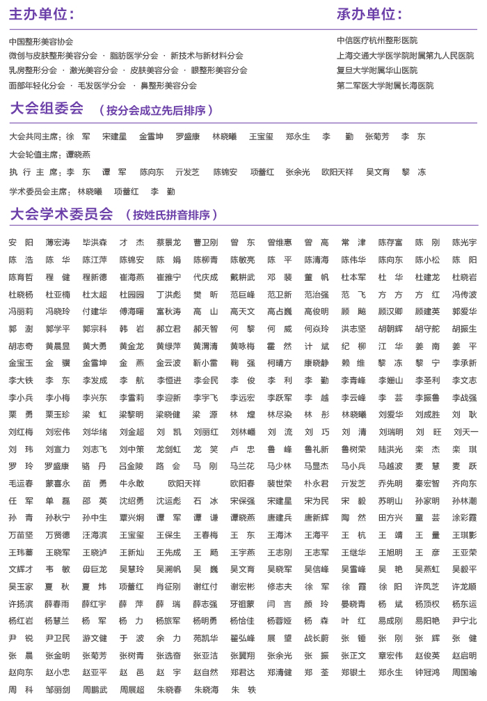 “十大分會齊聚,學術碰撞空前”——本屆大會將一如既往邀請到國內國際知名學者獻上精彩演講,疑難解答。此次盛會,我們將開國內醫學美容之先河,十大分會首次齊聚,用追求“次數日少,學術日精”的新辦會理念,讓醫學美容回歸科學本質的雄心壯志,向所有同行再次奉獻一場空前未有的醫學美容學術大融合,最少和最精的會議理念。新興技術和精準醫學齊飛,多中心臨床共創新成果一色,微創醫學美容大會將展示不一樣的廣闊的天空, 一年一度!想想,您是否舍得錯過?