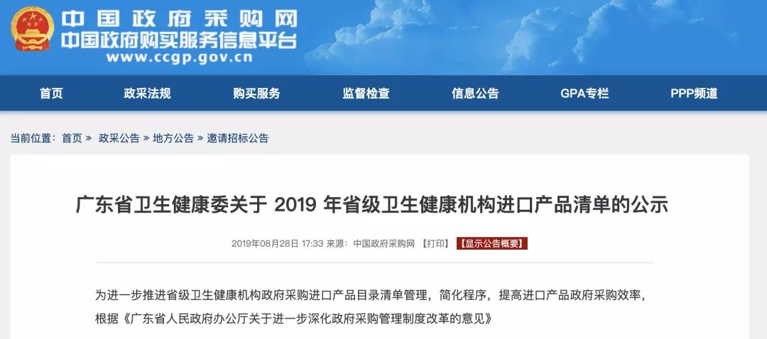 廣東省衛(wèi)健委曾發(fā)布《關(guān)于 2019 年省級(jí)衛(wèi)生健康機(jī)構(gòu)進(jìn)口產(chǎn)品清單的公示》,其中納入2019年廣東省省級(jí)衛(wèi)生健康機(jī)構(gòu)進(jìn)口產(chǎn)品目錄清單的醫(yī)療設(shè)備,共計(jì)132種,試劑73種。