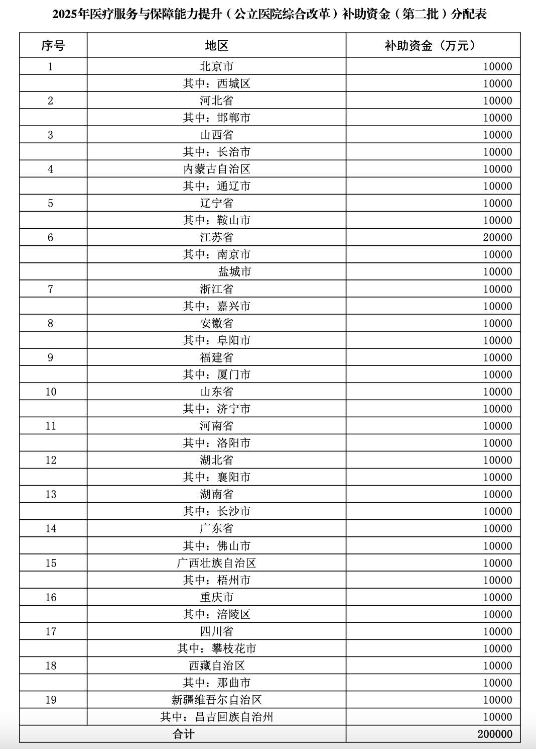 今年7月,財政部對2025年中央財政支持公立醫院改革與高質量發展示范項目競爭性評審結果進行了公示。本年度共有19個省的20個城市入選,分別為北京西城、河北邯鄲、山西長治、內蒙古通遼、遼寧鞍山、江蘇南京、江蘇鹽城、浙江嘉興、安徽阜陽、福建廈門、山東濟寧、河南洛陽、湖北襄陽、湖南長沙、廣東佛山、廣西梧州、重慶涪陵、四川攀枝花、西藏那曲、新疆昌吉。