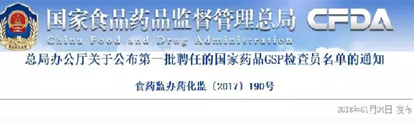 1月4日,國家食藥監(jiān)總局發(fā)布《關(guān)于公布第一批聘任的國家藥品GSP檢查員名單的通知》。