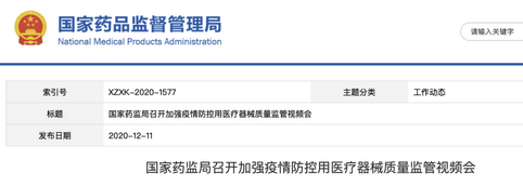 日前,國家藥監局召開加強疫情防控用醫療器械質量監管視頻會,全面貫徹落實國務院關于做好常態化疫情防控有關工作部署和要求,對進一步加強新冠病毒檢測試劑、醫用防護服、醫用口罩、紅外體溫計、呼吸機等醫療器械質量監管工作再部署、再強調、再落實。