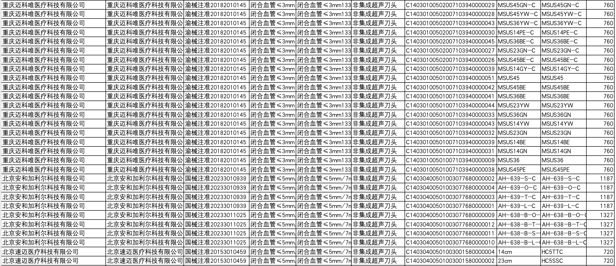 公示內容顯示,閉合血管≤3mm的超聲刀頭最低價已降至536元,閉合血管≤5mm/7mm的超聲刀頭最低價降至720元。