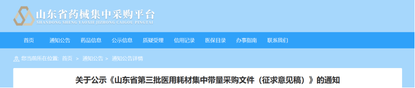 3月8日,山東省藥械集中采購平臺發布《山東省第三批醫用耗材集中帶量采購文件(征求意見稿)》(以下簡稱《征求意見稿》)。
