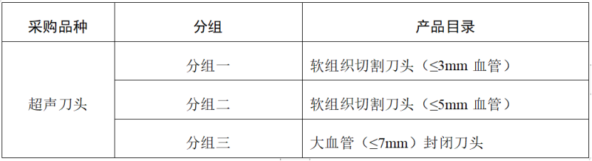 其中,超聲刀頭為國家醫保局醫保醫用耗材編碼前7位為C140301、C140302和C140304的產品。具體分組如下: