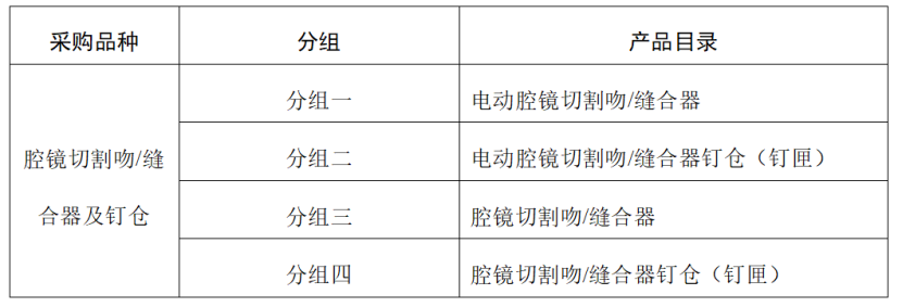 腔鏡切割吻/縫合器及釘倉(釘匣)為國家醫保局醫保醫用耗材編碼前7位為C110102、C110103、C110104和C110105的產品。具體分組如下: