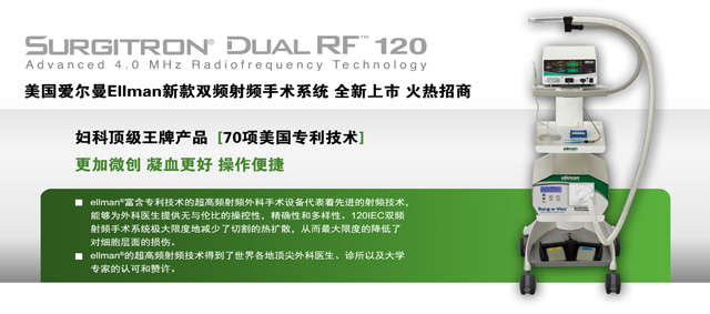 美國愛爾曼全新Ellman Surgitron Dual 120專注于婦科的應用,能夠在所有組織,包括薄壁組織,交融組織或者無張力組織中,像手術刀一樣操作進行無壓力切割,能夠實現操作多樣化、精確化;攜帶方便、免維護。顯著優勢:全數字射頻能量調節更加精準;全球最先進的雙射頻頻率輸出:4.0Mhz/1.7Mhz切割更加微創,凝血效果更加強勁;使用多功能操作手柄操作更加方便讓醫生得心應手。