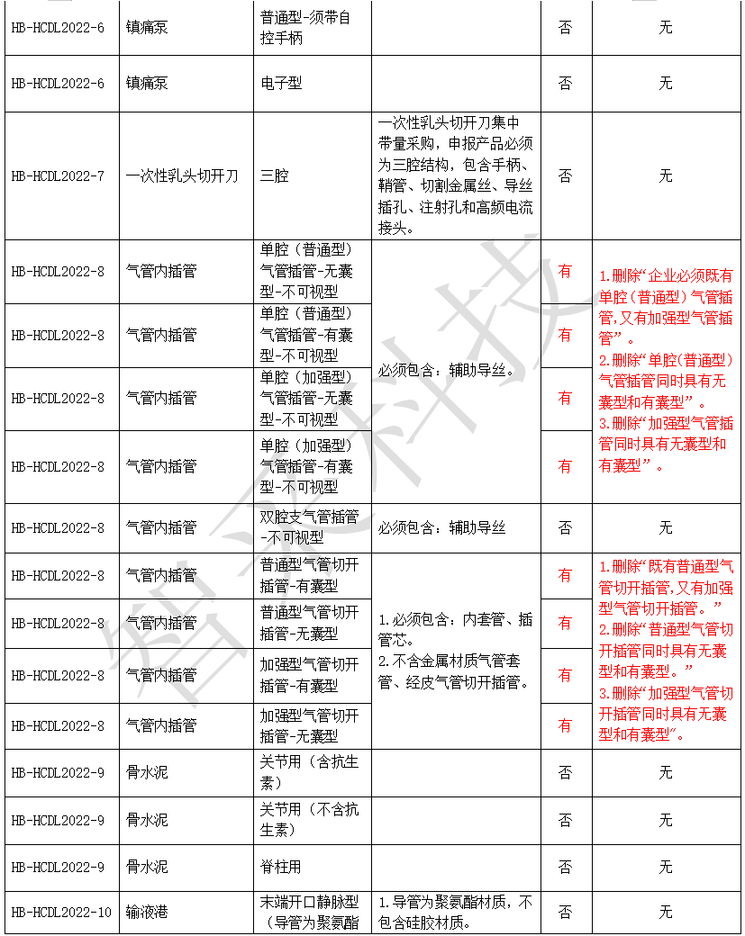河北省17類集中帶量采購醫用耗材及超聲刀頭品種申報要求: