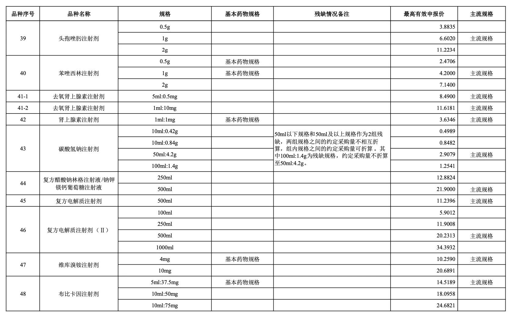 以采購品種范圍內同品種主流規格(即全國首年機構需求量(按含量折算)最大的規格)作為代表規格,參照藥品差比價規則折算至最小計量單位后的價格作為“單位可比價”。按“單位可比價”由低到高確定申報企業順位。“單位可比價”最低的為第一順位,次低的為第二順位,依次類推確定其他順位。