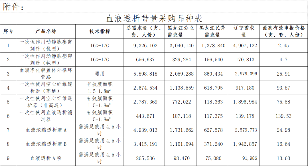 近日,黑龍江公共資源交易中心發(fā)布《黑龍江、遼寧省血液透析相關醫(yī)用耗材集中帶量采購公告》,將對11種血液透析類耗材開展集采。