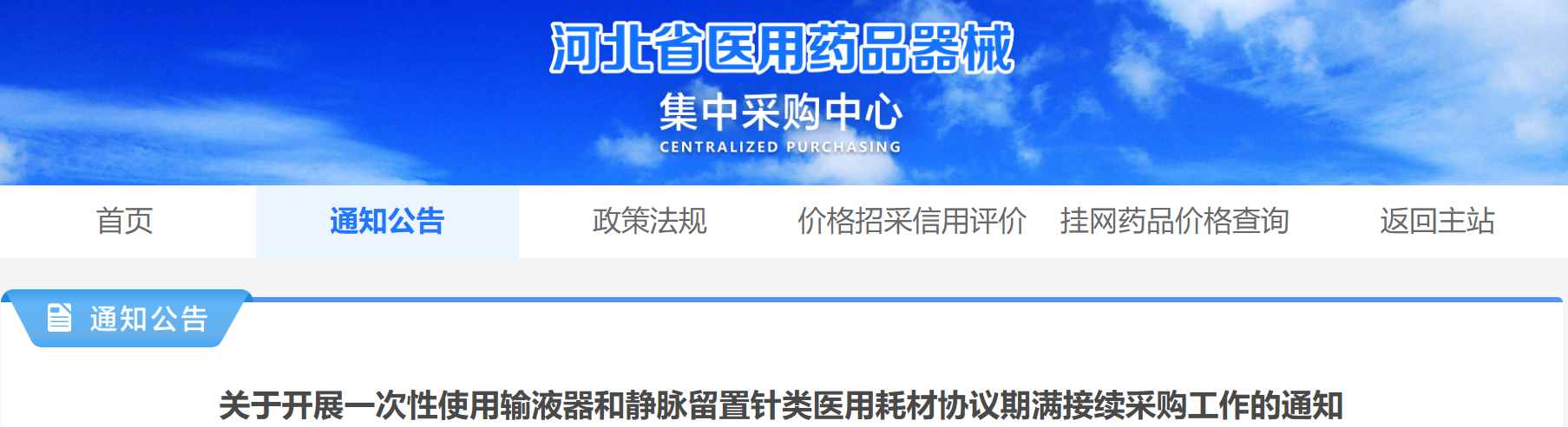 7月1日,河北省醫(yī)用藥品器械集中采購中心發(fā)布《關于開展一次性使用輸液器和靜脈留置針類醫(yī)用耗材協(xié)議期滿接續(xù)采購工作的通知》(簡稱《通知》)。