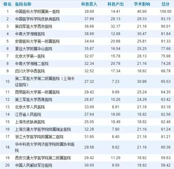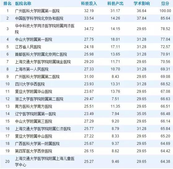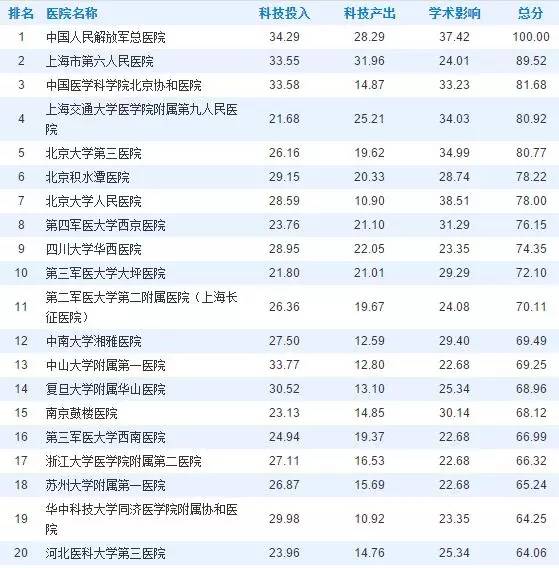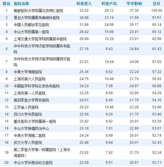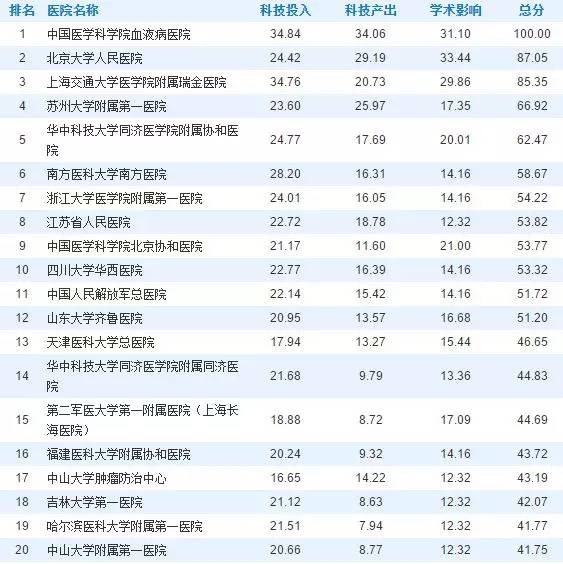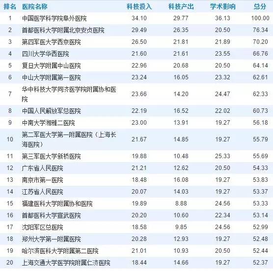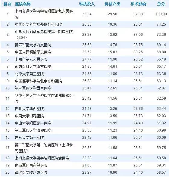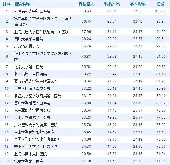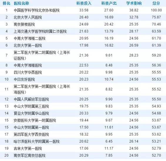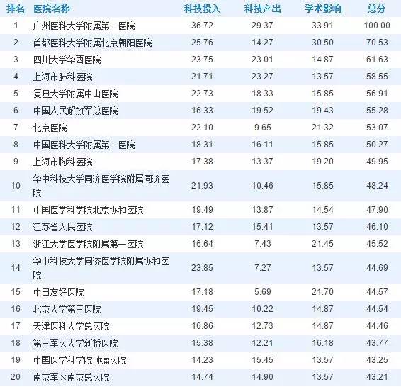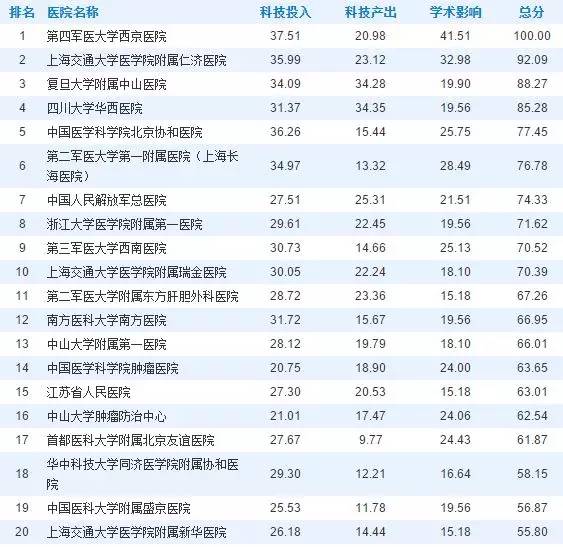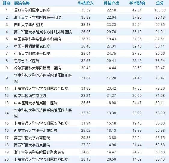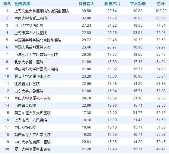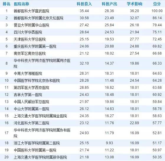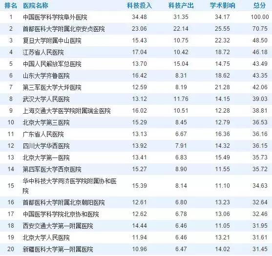 2015年度中國醫院科技影響力——主要學科排行榜發布