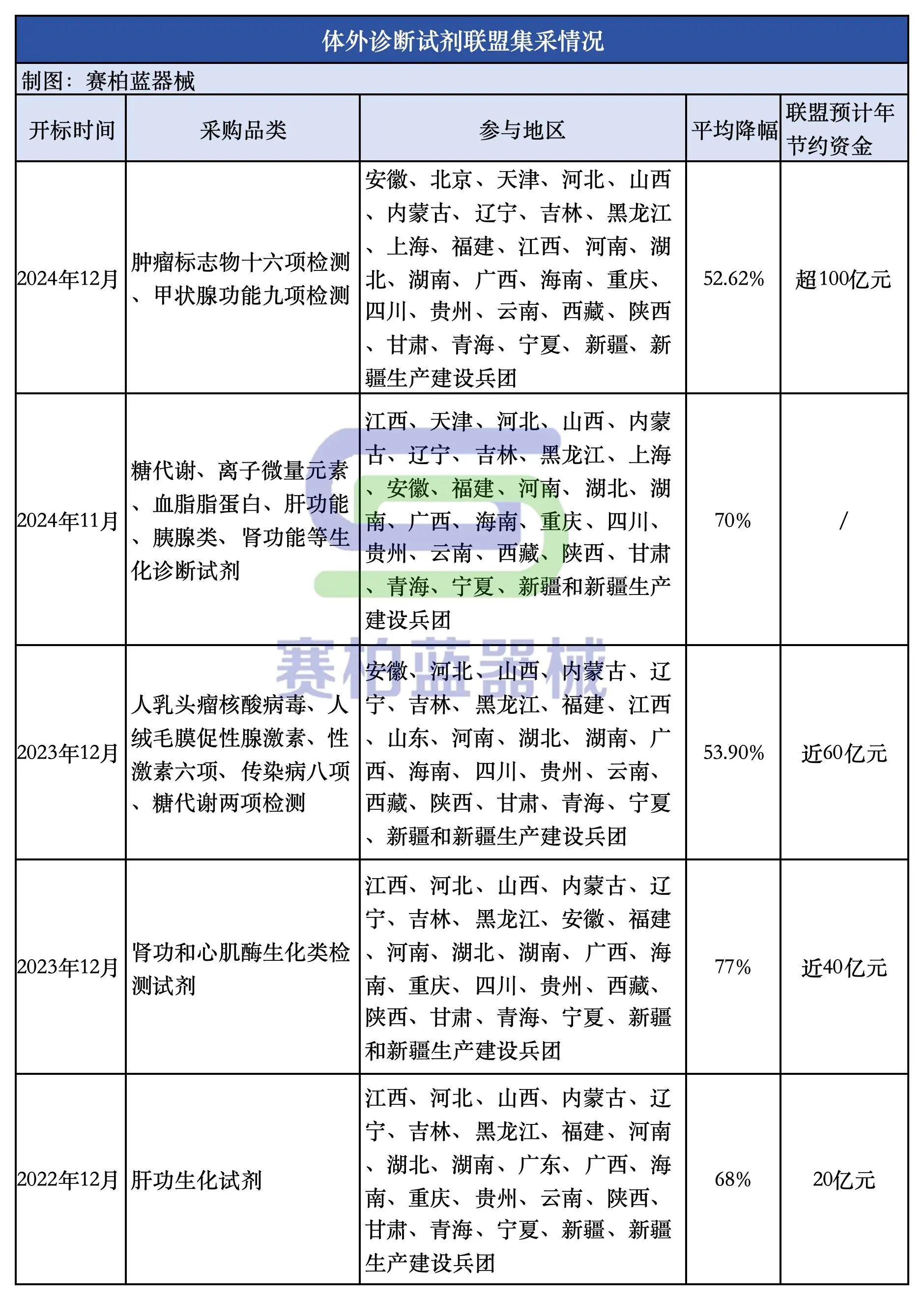 據報道,占采購需求量90%的羅氏診斷、雅培、貝克曼、西門子等進口企業以及邁瑞、安圖、新產業、邁克、亞輝龍等國內龍頭企業,全部以超過50%的降幅擬中選。擬中選產品平均降幅52.62%,最高降幅為84.25%,預計一年可為聯盟省份醫療機構節約試劑采購費用超過100億元。