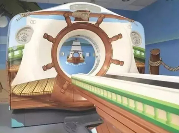 這些創(chuàng)意設(shè)計,發(fā)達國家比我們走得前一些。下圖為GE公司和美國曼哈頓某醫(yī)院共同設(shè)計的一款兒童核磁共振器,外觀墻壁粉刷都用了海洋的元素。該設(shè)備投入使用后,甚至很多17到21歲的病人也要求使用這款機器進行檢查。