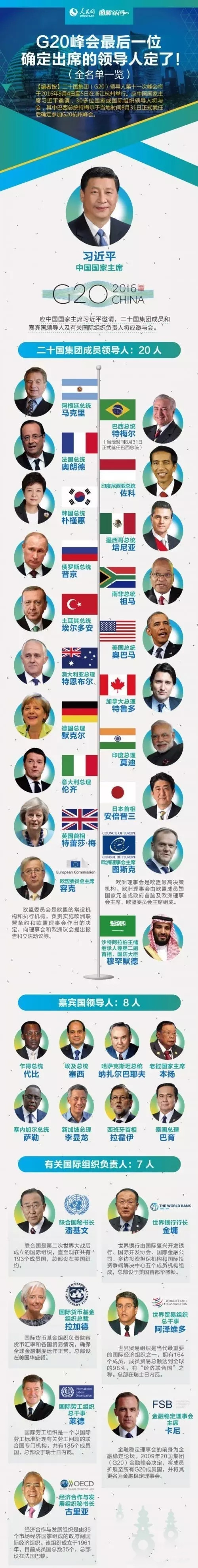 導語:二十國集團(G20)領導人第十一次峰會于9月4日至5日在中國杭州舉行,這也是中國第二次舉辦這一峰會。峰會有二十國集團成員和嘉賓國領導人及有關國際組織負責人與會。會議將推動國際金融體制改革,為有關實質問題的討論和協商奠定廣泛基礎,以尋求合作并促進世界經濟的穩定和持續增長。