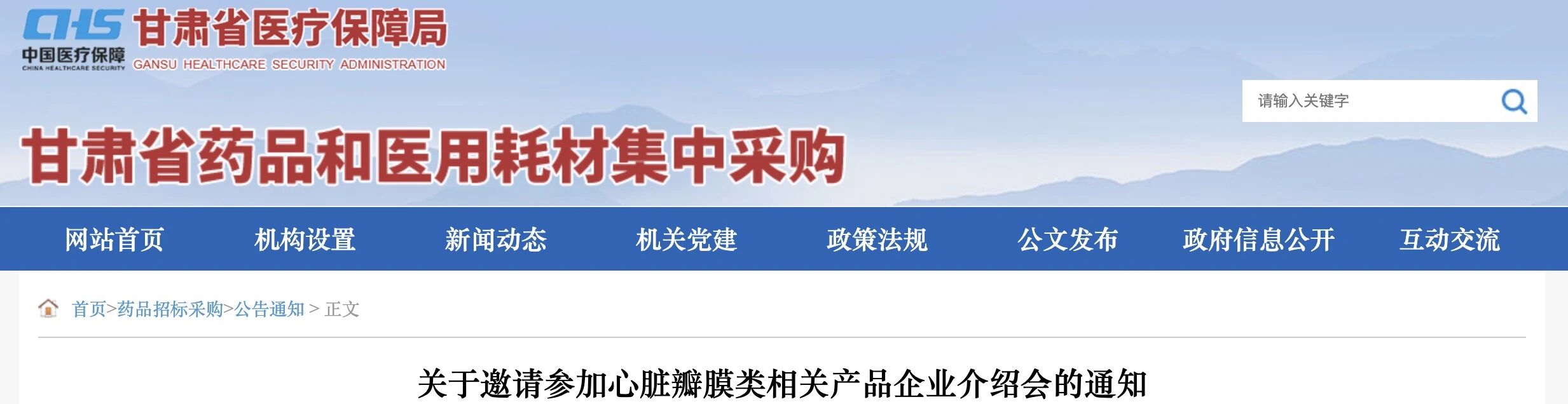 10月31日,甘肅醫保局發布《關于邀請參加心臟瓣膜類相關產品企業介紹會的通知》(簡稱《通知》)。