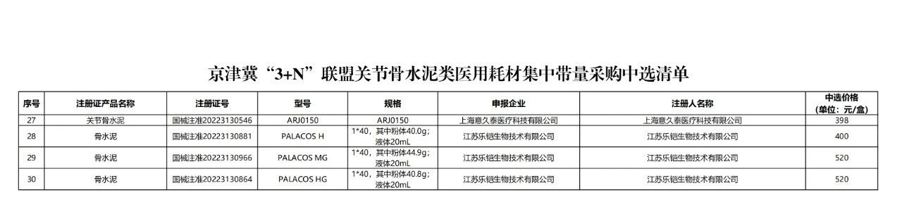 覆蓋范圍直逼“國采”的關節骨水泥聯盟集采,中選產品價格細節公布了。