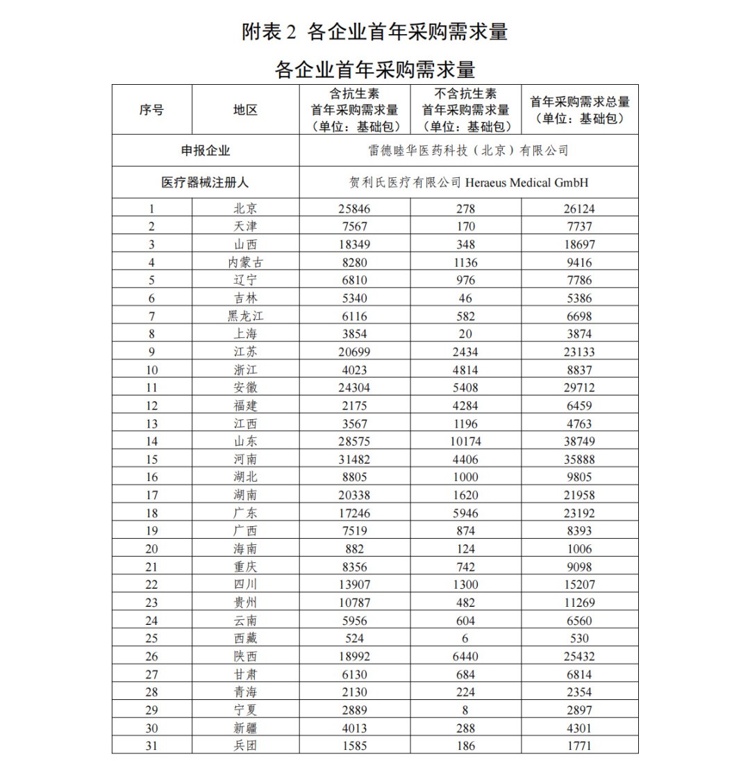 隨《公告》發(fā)布的正式版《采購文件》,公布了聯(lián)盟各地區(qū)首年采購需求量明細表,部分截圖如下(完整見文末)。