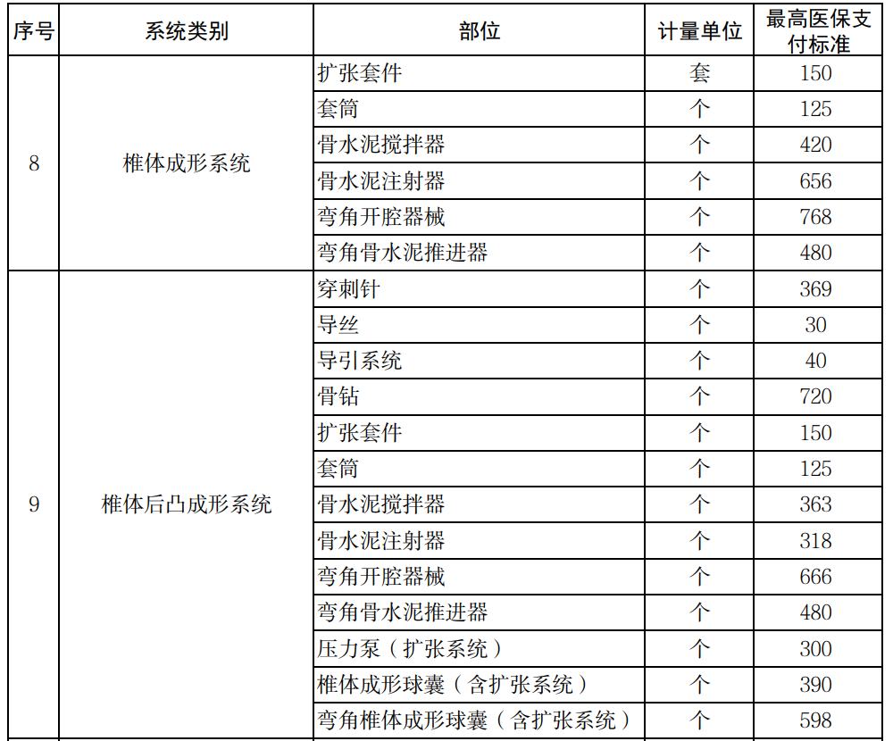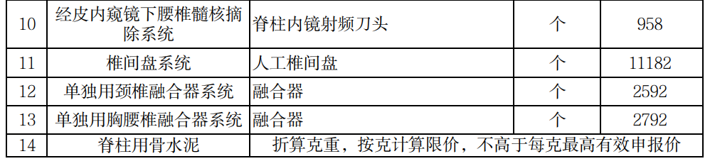 骨科脊柱類耗材集采中選產(chǎn)品以含伴隨服務(wù)費(fèi)的中選價格為支付標(biāo)準(zhǔn),使用超過或少于中選產(chǎn)品系統(tǒng)配備數(shù)量的中選產(chǎn)品部件,以各系統(tǒng)中選部件的中選價格為支付標(biāo)準(zhǔn),納入醫(yī)保支付范圍,醫(yī)保基金據(jù)實(shí)按規(guī)定比例支付。