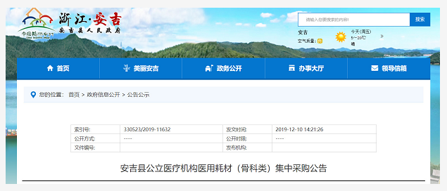 據了解,安吉縣是浙江省首個在公立醫院醫用耗材領域探索集中采購的地區。