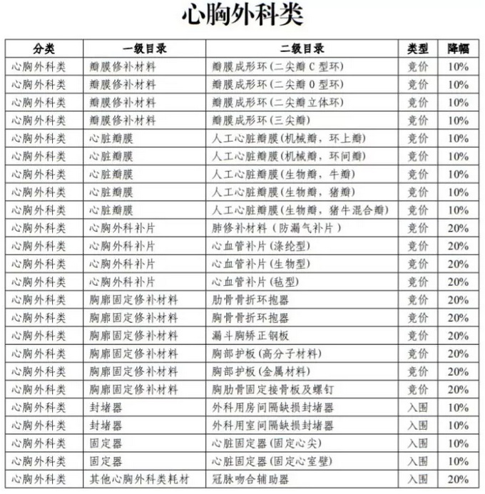其中心胸外科類24種耗材,11種需先降20%,13種需先降10%。