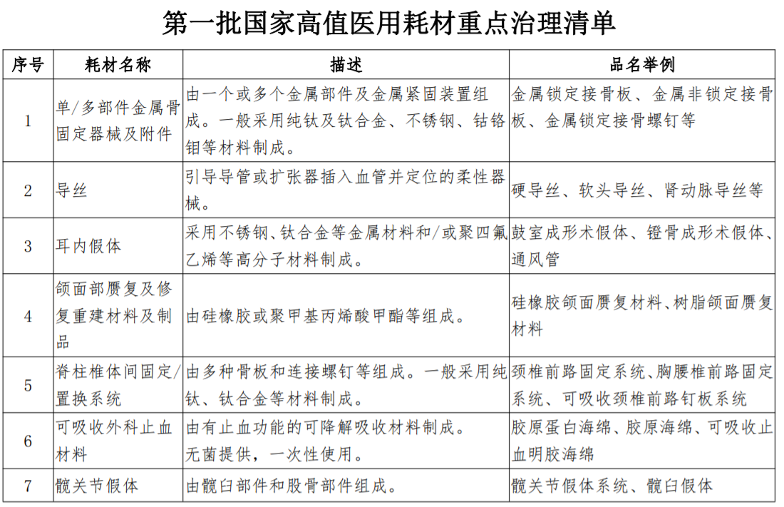 今年1月14日,國家衛健委發布《國家衛生健康委辦公廳關于印發第一批國家高值醫用耗材重點治理清單的通知》,公布重點治理的18種高值耗材。