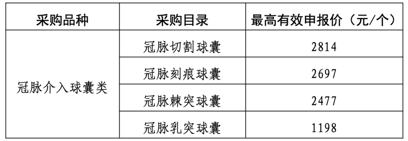 采購品種為冠脈介入球囊類醫用耗材,包括冠脈切割、刻痕、棘突和乳突球囊,具體目錄如下:
