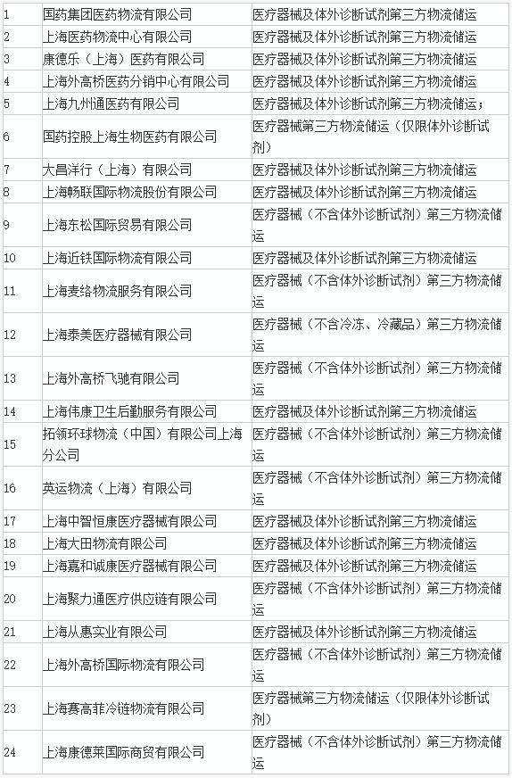 去年6月27日,上海食藥監(jiān)局公布了“為其他藥品經(jīng)營(yíng)企業(yè)、醫(yī)療器械生產(chǎn)經(jīng)營(yíng)企業(yè)提供貯存、配送服務(wù)企業(yè)名單(2016年6月27日)”共有24家醫(yī)療器械經(jīng)營(yíng)企業(yè)獲得第三方配送醫(yī)療器械的資格。