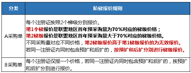 量價掛鉤階梯價格申報,預擴組<538元,后擴組<648員,藥球<16450元