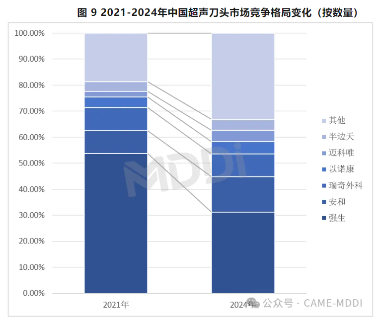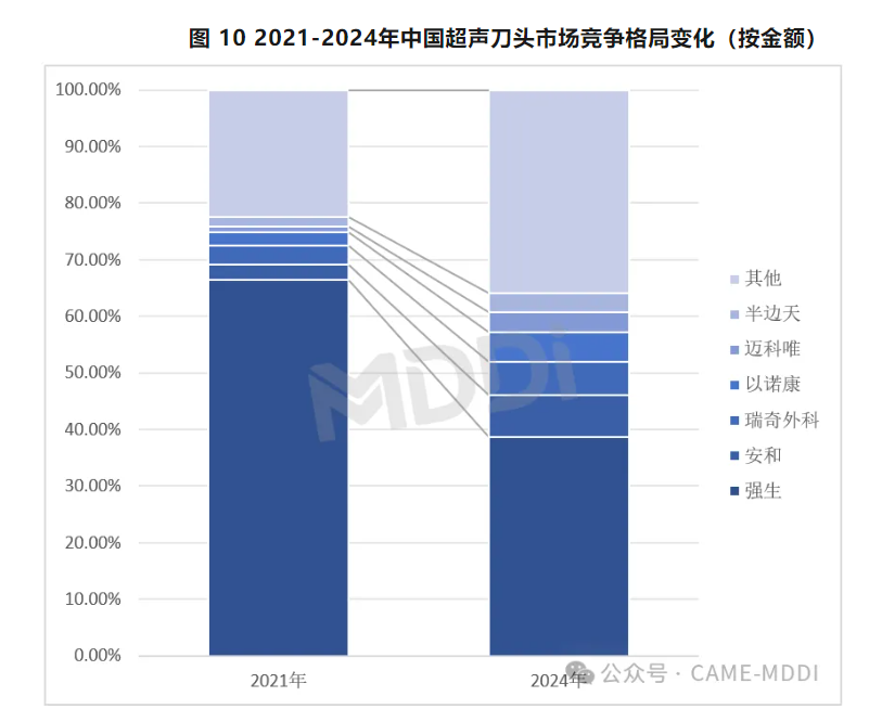 同時,國產超聲刀頭市場占比明顯提升。