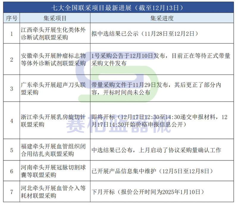 12月12日,深圳公共資源交易中心發布《深圳公共資源交易中心關于公示超聲刀頭和預充式導管沖洗器集中帶量采購協議期滿接續采購企業間關系的通知》(名單見文末),于2024年12月12日-2024年12月17日17:00進行公示。