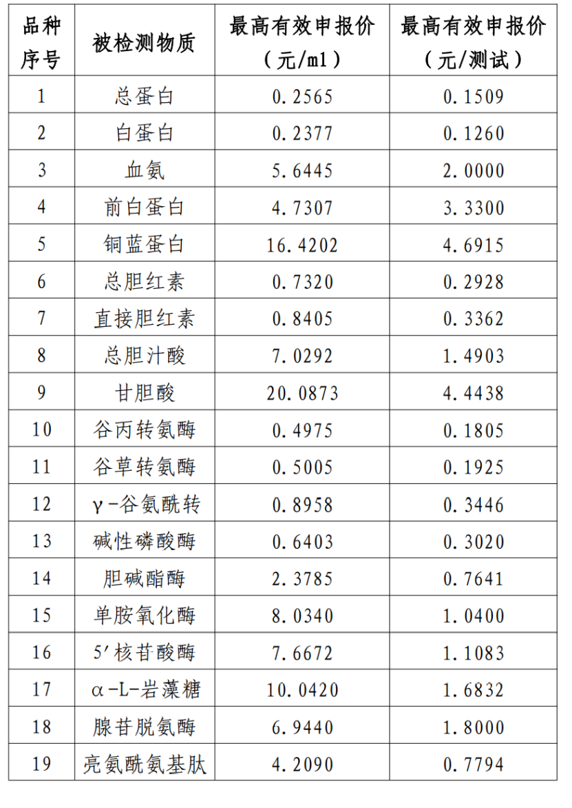 11月29日,江西醫(yī)保局發(fā)布《肝功生化類(lèi)檢測(cè)試劑省際聯(lián)盟集中帶量采購(gòu)公告(第2號(hào))》,公布最高有效申報(bào)價(jià)和采購(gòu)需求量。