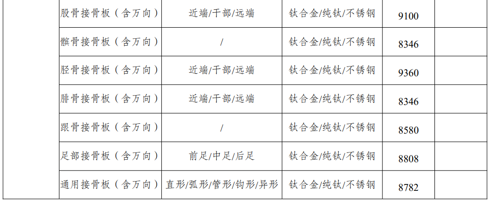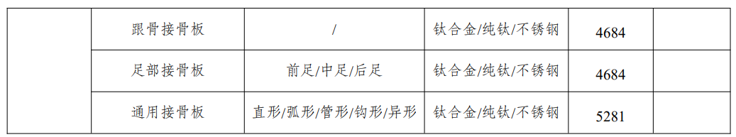 骨科創(chuàng)傷類(lèi)產(chǎn)品具體目錄如下: