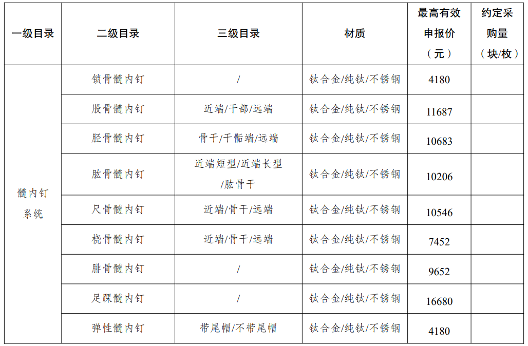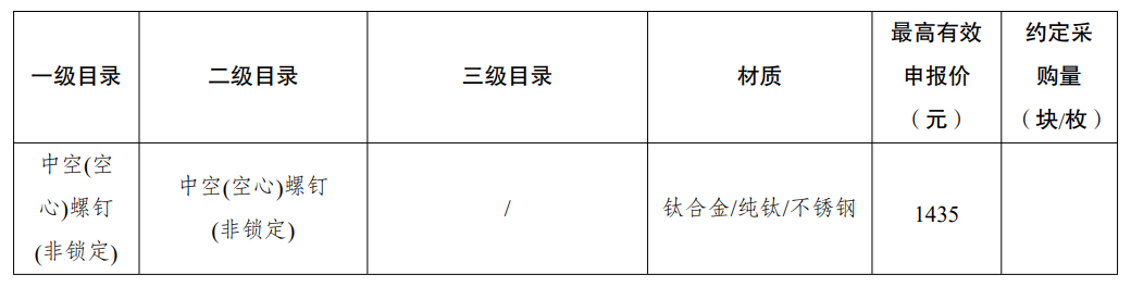 采購(gòu)品種:鎖定加壓接骨板系統(tǒng)、普通接骨板系統(tǒng)、髓內(nèi)釘系統(tǒng)、單獨(dú)使用的螺釘?shù)裙强苿?chuàng)傷類(lèi)產(chǎn)品,以及部分5mm集成超聲刀頭。